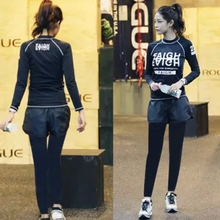 韩国代购瑜伽服套装女假两件运动裤跑步套装速干长袖健身服三件套