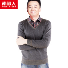 南极人假两件男士保暖内衣加厚加绒保暖上衣黄金绒暖甲衬衫领上装