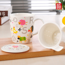 顺祥陶瓷家用简约茶杯过滤办公室杯子带盖带把泡茶杯创意水杯杯子