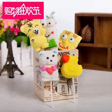 15克卡通造型棉花糖软糖小黄鸭KT猫棒棒糖果混味混款现货