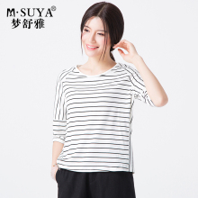梦舒雅女装2017夏季新款条纹t恤女宽松百搭韩版半袖女夏圆领上衣
