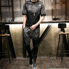 2017夏季新款短袖休闲套装潮流青年薄款哈伦两件韩版夜店社会男装
