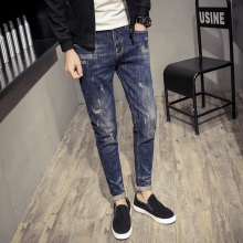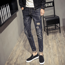 2017夏季新款韩版小脚牛仔裤男百搭修身九分破洞潮流春季男士裤子