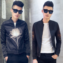 夏季青少年夹克男薄款青年韩版潮修身机车外套男棒球领休闲花衣服