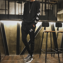 2017夏季新款潮流社会休闲卫衣哈伦裤男夜店时尚帅气韩版修身套装
