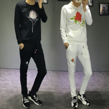 2017春装新款时尚刺绣套装男韩版潮夏季修身短袖运动服春季两件男