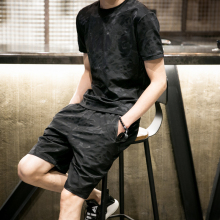 2017夏季新款迷彩运动套装男士时尚短袖t恤薄款五分裤潮修身两件
