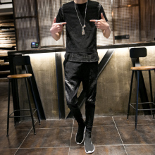 2017新款男士帅气套装夏季潮流韩版社会小伙九分哈伦短袖两件套男