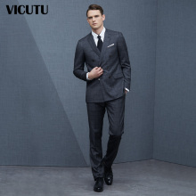 VICUTU/威可多春秋男士商务西服套装上装两粒扣灰色羊毛西服