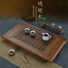 老客加厚鸡翅木茶盘檀木实木大号简约茶海功夫红木茶具抽屉式托盘