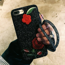 玫瑰花iPhone6plus手机壳女款韩国7闪粉保护套6s硅胶软防摔挂绳潮