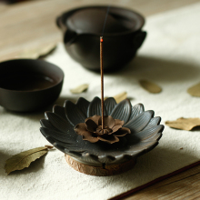 香炉香插莲花陶瓷熏香居室香薰炉香座香盘香托佛具檀香沉香线香炉