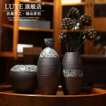黑色花瓶陶瓷创意摆件 客厅插花干花套装瓷器瓶 复古花瓶装饰工艺