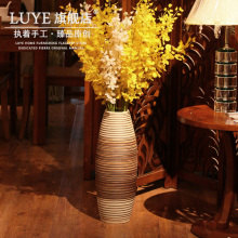 景德镇手工落地仿真花大花瓶粗陶瓷器复古瓶摆件客厅中式插花花瓶
