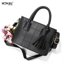 优哈优哈2017新款格子包包日韩版时尚休闲流苏女包手提斜挎包