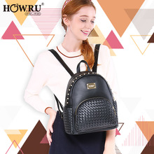 优哈2017春季新款双肩包女韩版pu铆钉包英伦编织简约休闲背包女包