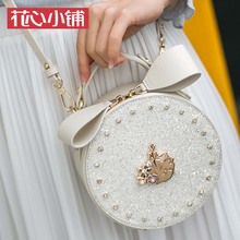花心小铺2017春夏新款水钻迷你单肩斜挎小圆包亮片包手提女包包