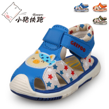 小猪快跑包头宝宝凉鞋学步鞋软底女童鞋绒面男婴儿鞋夏机能鞋防滑