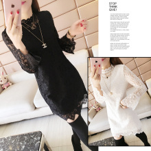 女装春装新款韩版灯笼袖蕾丝连衣裙显瘦镂空中长款打底衫女裙大码