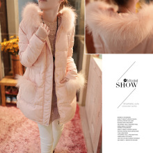 女装冬装新款韩版貉子毛领连帽中长保暖白鸭绒保暖羽绒服女外套