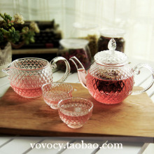 钻石光影。复古浮雕玻璃花草茶壶公道杯茶杯下午茶 茶壶泡茶套具