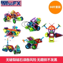 美国MAGFX精钢第二代磁力片磁力建构片百变提拉84件套装积木玩具