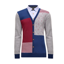 罗米欧春季热卖男装时尚拼色衬衫领加绒加厚保暖长袖针织衫Z4A042