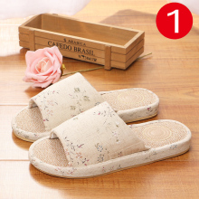 【买1送1】亚麻拖鞋家居室内女男情侣春夏秋木地板拖鞋防滑牛筋底