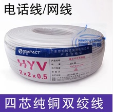 包邮广东思柏4芯纯铜电话线四芯网线监控双绞线白色100米0.5芯