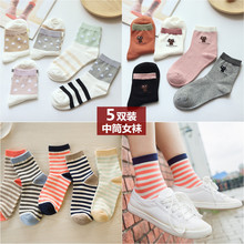 5双包邮 萌萌哒女袜 纯棉袜子 可爱女士袜子 吸汗袜子