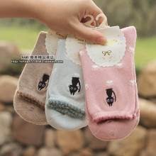 6双包邮 精梳棉纯棉猫咪刺绣女袜 可爱个性女袜