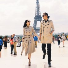 大喜自制 春新款 情侣风衣女 中长款外套纯色个性系带风衣