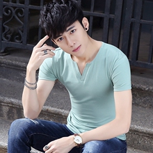 男士半袖t恤短袖个性潮2017春季新款潮流夏季v领韩版修身体恤帅气