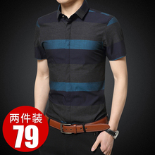 【2件装】衬衫男短袖夏季2017新款韩版修身衬衣休闲青年寸衫男装