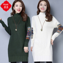 2017春秋时尚半高领毛衣套头女装中长款百搭宽松加厚打底针织衫