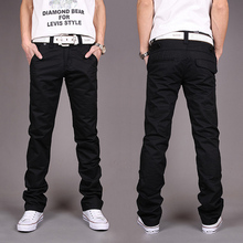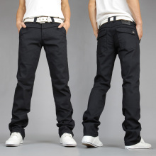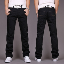 春季青少年男士黑色牛仔裤 男直筒修身休闲男装裤子潮大码长裤
