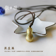 傲薇文艺复古项链森女风百搭花生挂坠长生果皮绳长毛衣链宝宝项链