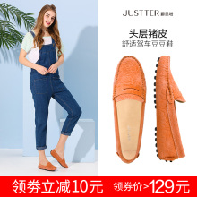 Justter新款真牛皮豆豆鞋女春浅口单鞋低帮孕妇平底练车鞋女1013