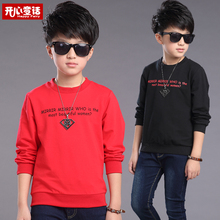 童装男童长袖T恤2017新款中大童卫衣春秋儿童打底衫红色圆领纯棉
