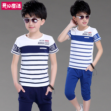 儿童装5男童6夏装套装2017新款8男孩9短袖10条纹11运动套装12岁潮