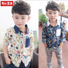 童装男童衬衣长袖春装2017潮中小童韩版纯棉宝宝儿童碎花春秋衬衫