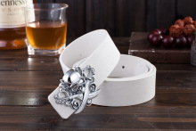 新款韩版平滑扣皮带男女士青年学生休闲个性裤腰带白色针扣骷髅头