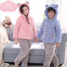 冬季加厚法兰绒夹棉儿童睡衣 女童亲子家居服男童珊瑚绒夹棉套装
