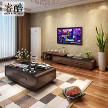 现代简约火烧石创意电视柜茶几组合北欧大理石茶几伸缩电视柜套装