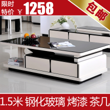 一等家具 大容量六抽茶几 钢化玻璃钢琴烤漆 简约现代时尚客厅