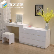 梳妆台现代简约白色烤漆化妆台卧室梳妆台电视柜一体柜组合可伸缩