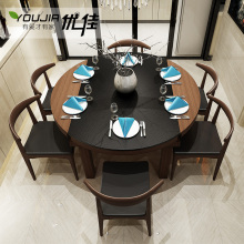 现代简约火烧石餐桌椅组合大理石餐桌圆形电磁炉伸缩圆桌实木饭桌