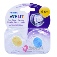 美国代购新安怡AVENT 婴儿宝宝安抚奶嘴 对装 透气 带盖6-18个月