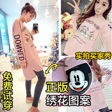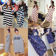 夏季纯棉睡裙女性感夏天休闲短袖睡衣宽松韩版少女中裙卡通家居服