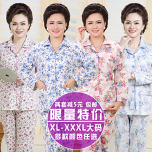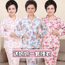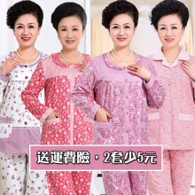 妈妈睡衣女春秋季纯棉开扣长袖套装中老年人女士开衫加大码家居服